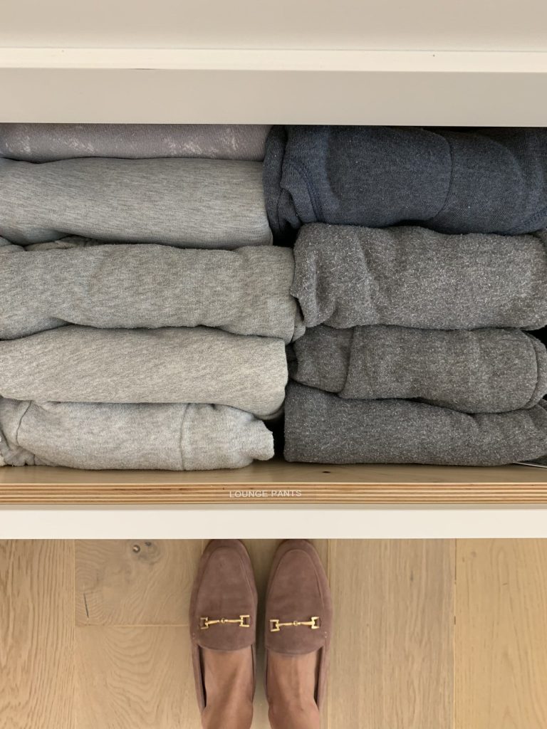 آنها را کنار هم قرار دهید. شما قادر خواهید بود همه چیز را در یک نگاه ببینید، بنابراین لازم نیست ته هر پشته ای را حفاری کنید و توده های خود را در این فرآیند از بین ببرید. همچنین به شما کمک می کند تا فضای کشو خود را به حداکثر برسانید تا از هر گوشه ای کارآمدتر استفاده کنید. (من همیشه با شلوار مشکل داشتم اما در واقع دوست دارم که چگونه در کمد تا شده به نظر می رسند